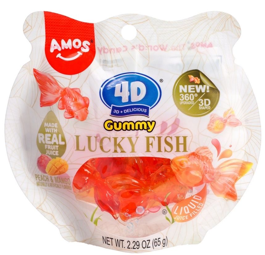 Le Amos 4D Gummy Lucky Fish sono originali caramelle gommose a forma di pesciolino portafortuna, realizzate con tecnologia 4D per un effetto realistico e sorprendente. Morbide, colorate e dal gusto fruttato, sono perfette per chi cerca uno snack dolce e divertente.