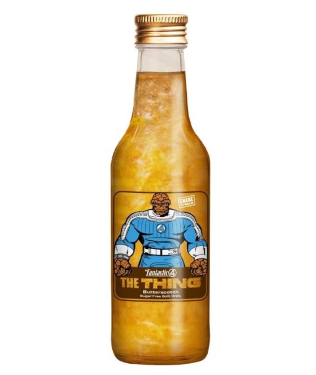 The Thing Butterscotch Beer – I Fantastici 4 è una bevanda analcolica dal gusto dolce e cremoso di butterscotch, ispirata al celebre personaggio The Thing del team Marvel dei Fantastici 4. Questa soda unisce note di caramello e burro per creare un sapore ricco e avvolgente, perfetto per chi ama le bevande dal gusto dessert.
