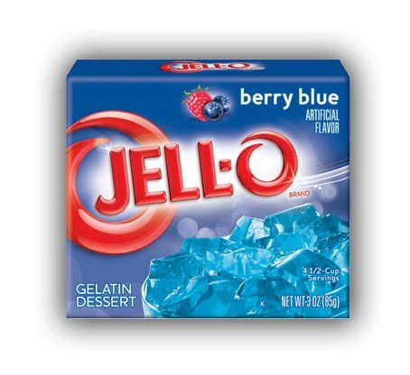 Gelatina alimentare al gusto di Mirtillo Blu. Nome originale Jell-o Blueberry.