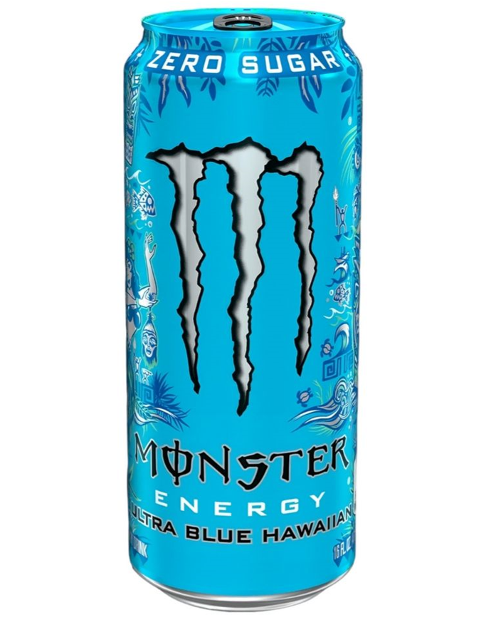 Monster Energy Ultra Blue Hawaiian porta un’esplosione di sapori tropicali nella linea Monster Ultra, combinando la classica Monster Energy Blend con un gusto fresco e fruttato ispirato al cocktail Blue Hawaiian.
